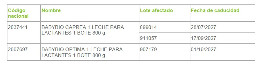 La Agencia Española de Seguridad Alimentaria y Nutrición (AESAN) ha sido informada por las autoridades sanitarias de Francia, a través de la Red de Alerta Alimentaria Europea (RASFF), de la posible presencia de cereulida en ciertos productos de la marca Babybio. La información sobre esta
